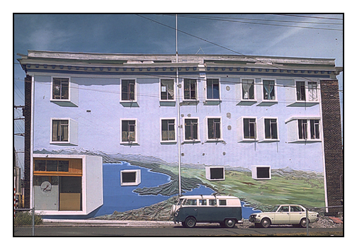 portals flying high above the world. "City in the Sky" is Seattle's first 3-D mural. The mural was a collaboration between artists Don Miles and Don Barrie. It's 3-D sculpting was done by Don Miles (creator of the Milestone Process) and the concept and painting was done by Don Barrie. The mural took two years to complete. 1975-1977. |