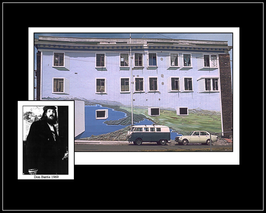 portals flying high above the world. "City in the Sky" is Seattle's first 3-D mural. The mural was a collaboration between artists Don Miles and Don Barrie. It's 3-D sculpting was done by Don Miles (creator of the Milestone Process) and the concept and painting was done by Don Barrie. The mural took two years to complete. 1975-1977. |