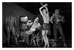 FRANK MOORE'S CHERO COMPANY 1989 Franklin Furnance NYC, NY. (Left to right, back row) Rourke James Smith,